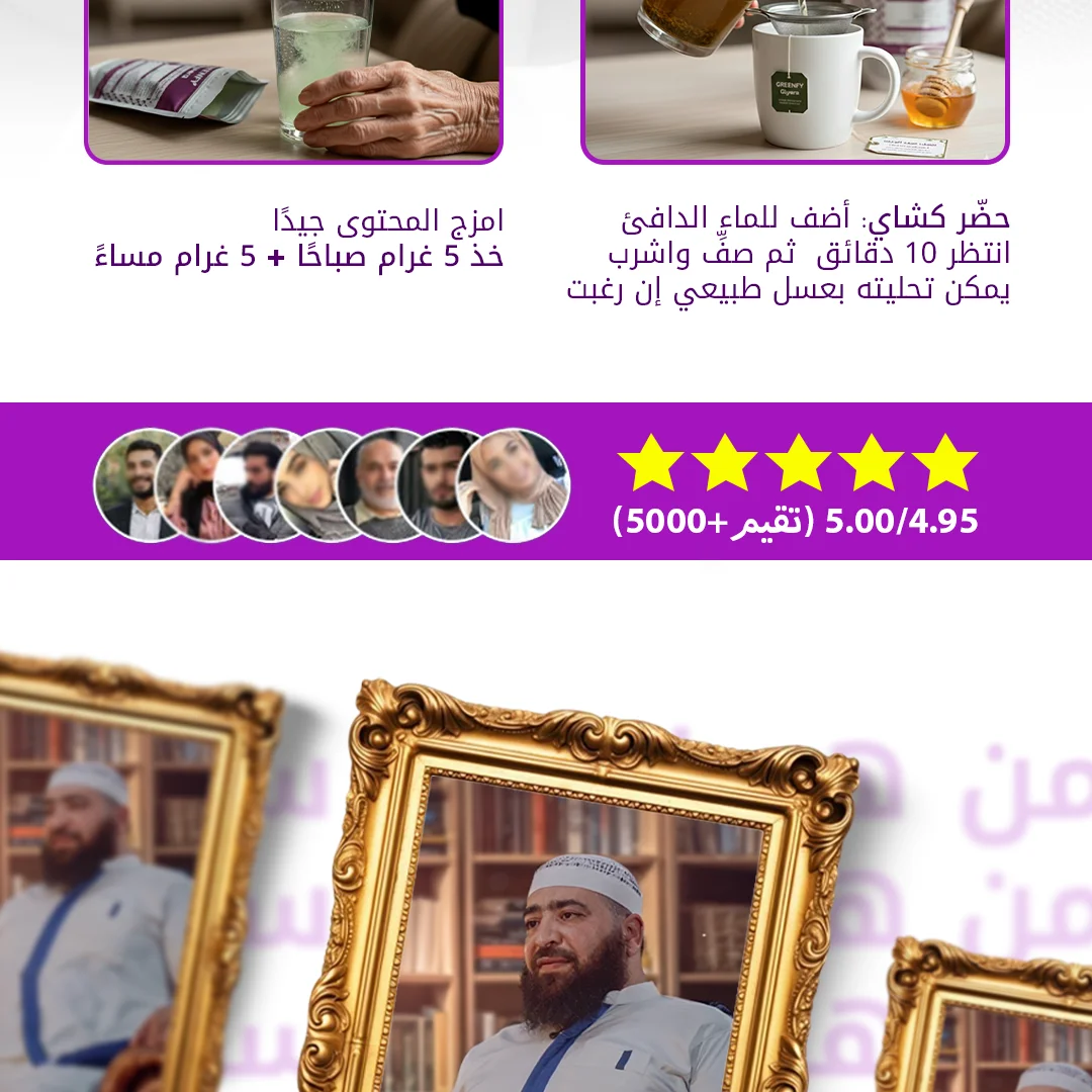 • امزج المحتوى جيداً وخذ خمسة غرامات صباحاً وخمسة غرامات مساءً