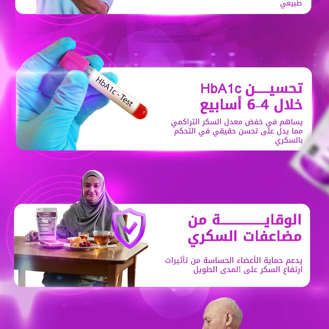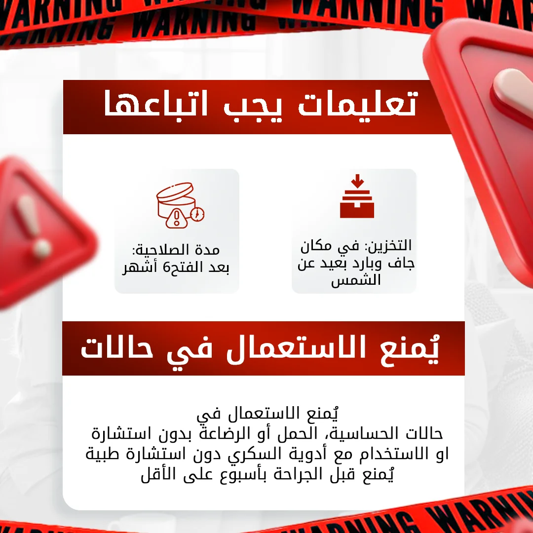 • الوقاية من مضاعفات السكري: يدعم حماية الأعضاء الحساسة من تأثيرات ارتفاع السكر على المدى الطويل
